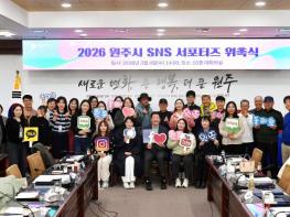 원주시는 지난 4일 시청 대회의실에서 ‘2026 원주시 SNS서포터즈’ 위촉식을 개최했다.시는 앞서 공개 모집을 통해 지역의 다양한 모습을 소개할 30명의 SNS서포터즈를 선발했다. 분야별로 유튜브 10명, 인