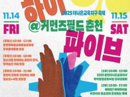 춘천교육지원청과 춘천시청은 ‘2025년 춘천더나은교육지구 축제 하이 틴(HI Teen)! 하이 파이브’를 11월 14일부터 15일까지 이틀간 커먼즈필드춘천(공지로255)에서 개최한다. 이번 축제는 어린이와 청소