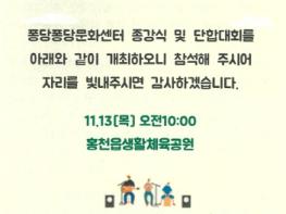 홍천군은 11월 13일, 홍천읍 생활체육공원에서 '제4회 퐁당퐁당 문화센터 종강식 및 단합대회'를 개최한다고 밝혔다.이번 행사는 한 해 동안 문화센터 프로그램을 수강한 주민들이 함께 모여 학습 성과를 공