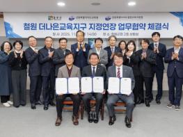 강원특별자치도교육청은 철원군청, 철원교육지원청과 11월 3일 철원군청 상황실에서 ‘철원 더나은교육지구 연장지정 업무협약’을 체결했다. 이번 협약은 2018년 시작해 8년간 제1~2기 사업을 거쳐 2026년