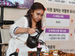 2026 얼음나라 화천산천어축제장에 평화를 기원하는 에티오피아의 커피향이 은은하게 퍼져 나가고 있다. 화천군은 축제가 개막한 지난 10일부터 축제장 내에 에티오피아 참전용사 후손 장학사업 홍보관을