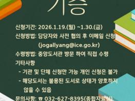 인천광역시교육청신트리도서관은 지역주민의 자발적인 학습 문화 조성과 지속 가능한 마을 학습공동체 형성을 위해 2026년 학습동아리를 모집한다.이번 모집은 신트리도서관 평생학습 프로그램 수료자 또는