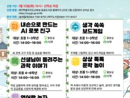 제주도교육청 제주도서관은 겨울방학을 맞아 20일부터 2월 28일까지 초등학생들을 대상으로 ‘2026년 놀래올래 겨울방학 온동네 키움 프로그램’을 운영한다. 이번 프로그램은 학교 밖 돌봄을 지원하고 학생