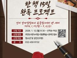 인천광역시교육청주안도서관은 청소년과 성인을 대상으로 2026년 비대면 함께 읽기·쓰기'한 책 15일 완독 프로젝트'를 운영한다. 1월 19일부터 11월 20일까지 총 6기에 걸쳐 운영되며, 참여자들은 네이버 밴