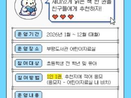 인천광역시교육청부평도서관은 2026년 한 해 동안 어린이가 직접 참여하는 독서활동 ‘내가 읽은 책을 소개합니다(내책소)’를 운영한다.‘내책소’는 어린이들이 매월 스스로 읽은 책을 추천하고 소개하는