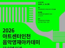 인천경제자유구역청은 아트센터인천의 클래식 영재 발굴·육성 프로그램 ‘음악영재 아카데미’ 2기 수강생 선발을 위한 공개 오디션을 오는 2월 14일에 개최한다고 밝혔다.▣ 아트센터인천, 무대 중심의 예