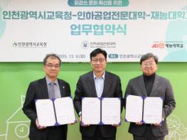 인천광역시교육청은 9일 인하공업전문대학, 재능대학교와 읽걷쓰 문화 확산을 위한 업무 협약을 체결했다.‘읽걷쓰’는 즐거운 읽기, 온전한 경험, 능동적 참여를 기반으로 나다움과 인간다움을 기르는 인천
