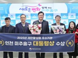 인천 미추홀구는 9일 정부세종청사에서 열린 ‘2025년 제안 활성화 우수기관 시상식’에서 대통령상을 받았다.행정안전부는 매년 중앙행정기관, 지방자치단체, 교육청 등을 대상으로 ▲제안 채택률 및 실시