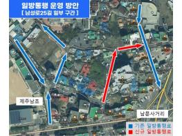 제주시는 남문로터리 인근 남성로25길에 대해 주민주도형 일방통행로 조성사업을 3월 10일 착공한다. 남성로25길은 보행자 통행량이 많은 구간이지만 도로 폭이 협소해 차량 교차 통행이 어렵고, 별도의 보