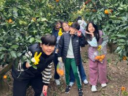 제주도교육청 창천초등학교는 1일 전교생을 대상으로 서귀포시에서 운영하는 ‘늘품마을학교’ 프로그램을 운영했다. 이번 3회차 활동에서는 학생들이 학교 인근 감귤밭을 찾아 나무에 열린 감귤을 관찰하고