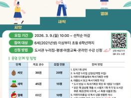 인천광역시교육청화도진도서관은 어린이가 도서관을 친숙한 배움의 공간으로 경험할 수 있도록, 오는 10일부터 관내 어린이집·유치원·초등학교를 대상으로 ‘1일 도서관체험교실’ 참여 기관을 모집한다.이