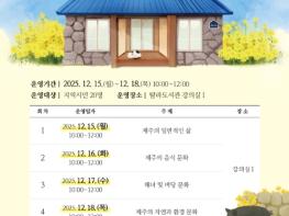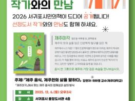 서귀포시는 12월 6일 오후 2시, 서귀포시 중앙도서관에서 2026년 서귀포시민의 책으로 선정된 '제주미각'의 저자 이하영 교수를 초청해 작가와의 만남을 운영한다.2026 시민의 책 선정 도서 중 '제주미각'은