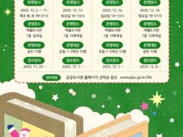 제주시 애월도서관은 겨울을 맞아 지역 주민들이 따뜻하고 풍요로운 연말을 보낼 수 있도록 12월 2일부터 18일까지 ‘도서관에서 메리북스마스!’ 연말 특별 프로그램을 운영한다. 이번 프로그램은 성인과