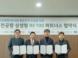 인천국제공항공사는 20일 오전 공항청사 회의실에서 물류단지 입주기업 3개社와 함께 ‘상생형 RE100 파트너스 업무협약(MOU)’을 체결했다고 밝혔다.이날 협약식에는 인천국제공항공사 배영민 인프라본부장