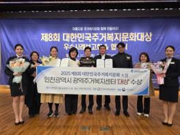 인천광역시는 11월 20일 인천광역시 광역주거복지센터가 ‘제8회 대한민국 주거복지 문화대상’에서 대상을 수상했다고 밝혔다.‘대한민국 주거복지 문화대상’은 주거복지문화운동본부(국토교통부 비영리민