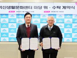인천 미추홀구는 지난 19일 미추홀학산문화원(원장 정형서)과 학산생활문화센터 ‘마당’의 안정적 운영을 위한 위수탁 계약을 체결했다.구는 ‘마당’의 운영 수탁기관을 공개 모집한 뒤 민간위탁심의위원