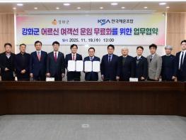 강화군은 지난 19일 한국해운조합과 ‘어르신 여객선 운임 무료화 지원’ 업무협약을 체결하고, 내년 1월부터 사업을 본격 시행한다고 밝혔다.이번 협약을 통해 추진되는 사업은 고령층의 교통복지 향상을