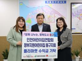 정부지원어린이집 인천동구지회(지회장 김학선)는 지난 12일 플리마켓에서 모은 수익금 58만원을 동구에 기탁했다고 밝혔다.지난 10월25일 인천교공원에서 진행된 플리마켓 ‘동행 i-park : 인천교공원’에