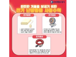 계양소방서는 본격적인 겨울철을 앞두고 난방기기 사용이 증가함에 따라 전기장판·전기히터·전기열선 등 전기 난방용품의 안전사용 수칙을 집중 홍보한다고 19일 밝혔다.소방서에 따르면 겨울철에는 전기장