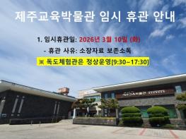 제주도교육청 제주교육박물관은 10일 소장자료의 안전한 보존과 쾌적한 관람 환경 조성을 위해 임시 휴관을 실시한다. 박물관은 소중한 교육 자료의 훼손을 방지하고자 매년 두 차례 문화재 전문 약제를 활