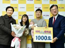 경산시는 2일 경산중앙교회 내 대경월드휴먼브리지 사무실에서‘아이드림축하금 1,000호 대상자 탄생 축하 기념행사’를 가졌다. 아이드림축하금 지원사업은 경산시가 지난해 7월 경산중앙교회, 대경월드휴