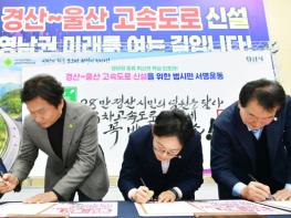 경산시는 지난달 28일 개최한 ‘경산~울산 고속도로 신설 10만 범시민 서명운동 출범식’을 기점으로 본격 추진한 서명운동이 시민들의 적극적인 참여에 힘입어 불과 1주일 만에 10만 명의 서명을 달성했다