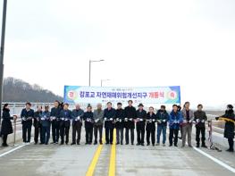 김천시는 2025년 12월 11일, 감포교 자연재해위험지구 정비사업이 마무리 단계에 접어들며 도의원 및 시의원, 지역주민 등 170여 명이 참석한 가운데 신설 감포교 개통을 기념하는 테이프 커팅식을 가졌다.