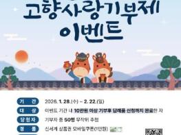 의성군은 설 명절을 맞아 고향사랑기부제 활성화와 기부 문화 확산을 위해 기부자를 대상으로 한 두 가지 이벤트를 추진한다고 밝혔다.먼저, 의성군은 1월 28일부터 2월 22일까지 ‘설 맞이 고향사랑기부제