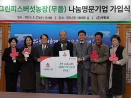 그린피스 버섯농장 박희주 대표는 지난 27일 청도군청에서 경북사회복지공동모금회 주관하에 나눔명문기업 회원 가입식을 가졌다.나눔명문기업은 법인 명의로 1억원 이상을 기부(또는 약정)한 고액 기부자