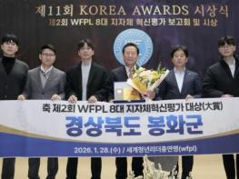 봉화군이 세계청년리더총연맹(WFPL) 부설 지자체혁신평가위원회(GEC)가 주관한 ‘제2회 WFPL 8대 지자체 혁신평가’에서 기관 부문 최고 영예인 ‘대상(大賞)’을 수상했다.이번 시상식은 2026년 1월 28일