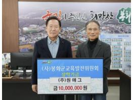 봉화군에 소재한 ㈜원애그는 2월 4일 봉화군청을 방문해 지역 교육발전과 인재 육성을 위해 (사)봉화군교육발전위원회에 장학금 1천만원을 기탁했다.㈜원애그는 이번 기탁에 앞서서도 2023년부터 꾸준히 장