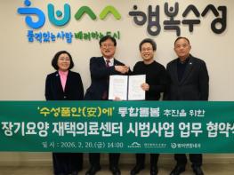 대구 수성구는 오는 3월 27일 통합돌봄 사업의 본격 시행을 앞두고, ‘장기요양 재택의료센터 시범 사업’의 원활한 추진과 지역 통합돌봄 체계 구축을 위해 범어연합내과의원과 업무협약을 체결했다고 밝혔