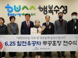 대구 수성구는 지난 28일 6·25전쟁에 참전해 공을 세운 故 우희진 일병의 유가족에게 화랑무공훈장과 증서를 전수했다.이날 전수식에는 유가족 우성록 씨를 비롯해 김대권 수성구청장, 김인태 무공수훈자회