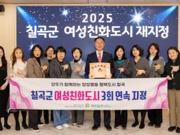 칠곡군이 성평등가족부로부터 경북 내 군 단위 최초로 3회 연속 여성친화도시로 지정됐다.2016년 최초 지정 이후 2021년 재지정에 이어 이번 지정으로 2026년부터 향후 5년간 여성친화도시 자격을 유지하게