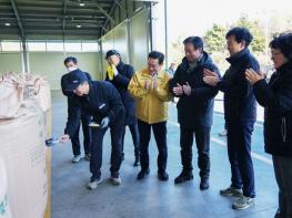 영천시는 지난 28일 최기문 시장이 신녕농협 마늘경매식집하장에서 진행된 공공비축미 매입 현장을 방문 점검했다고 밝혔다.최기문 시장과 시 관계자들은 현장에서 올가을 잦은 비로 병해충 발생과 수확 지