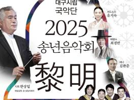 대구시립국악단(예술감독 겸 상임지휘자 한상일) 2025 송년 음악회 '여명(黎明)' 공연이 12월 23일 오후 7시 30분 대구문화예술회관 팔공홀에서 펼쳐진다.곽태천, 유지숙, 최경만 등 명인 명창의 무대와 함