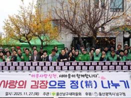 남구새마을회(회장 황병철)는 남구청 후생관 앞 주차장에서 따뜻한 손길이 더욱 필요한 동절기를 맞아 ‘사랑의 김장으로 김장담그기 행사’를 실시했다고 27일 밝혔다. 이번 행사는 26일과 27일 2일간 일