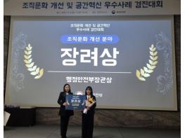 경상남도가 5일 청주 오송컨벤션센터(OSCO)에서 열린 행정안전부 주관 ‘2025년 조직문화 개선 우수사례 경진대회’에서 ‘장려상’을 수상했다.‘조직문화 개선 우수사례 경진대회’는 중앙부처, 지방자치
