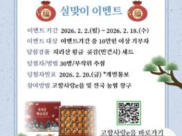 산청군은 2월 2일부터 2월 18일까지 2026년 설 명절을 맞아 고향사랑기부제 활성화를 위한 특별 이벤트를 실시한다.이번 이벤트는 고향사랑기부제 참여 확대와 기부 문화 확산을 위해 마련됐으며, 이벤트 기