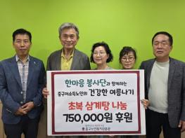 부산 중구는 지난 8일 (사)중구전통시장연합회 회장단이 참석한 가운데, 지역사회 발전과 전통시장 상생화합 증진에 기여한 (사)중구전통시장연합회에 감사패를 전달하고 불우이웃돕기 성품을 기탁받는 뜻깊
