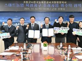 거창군과 한국농어촌공사 거창·함양지사는 지난 11월 6일 구인모 거창군수, 정명석 한국농어촌공사 거창·함양지사장, 청년·여성농업인 대표들이 참석한 가운데 ‘거창군 스마트농업육성지구 조성사업’ 추진