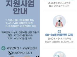 거창군 보건소는 오는 9일부터 27일까지 치아 상실로 식사와 일상생활에 불편을 겪고 있는 저소득층을 대상으로 틀니, 임플란트 지원사업 신청을 받는다.이번 지원사업은 치아 기능이 저하된 어르신들에게