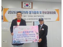 이화온누리약국(대표 서명수)과 통영시 지역대장(사무관 남강우)은 지난 27일 6·25참전유공자회 거제시지회를 방문하여 새해를 맞아 어르신들에게 전달해달라며 100만원 상당의 영양제 15개를 기부했다.두
