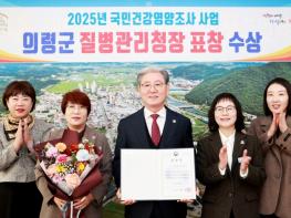 의령군은 지난 8일 ‘2025년 국민건강영양조사’ 협력 기관 중 조사 품질 및 참여도 제고 분야에서 우수 유공기관으로 선정돼 질병관리청장 기관 표창을 수상했다고 밝혔다.국민건강영양조사는 지역 건강지