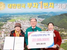 의령군은 지난 9일 의령군여성단체협의회(회장 김순자)와 할머니봉사회(회장 곽차연)가 지역 인재 육성을 위해 (사)의령군장학회에 각각 200만 원을 기탁했다고 밝혔다.의령군여성단체협의회는 비둘기회, 새