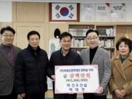 하동군장학재단은 지난 21일 ㈜건우건설 백태경 대표가 군수 집무실을 방문해 지역 인재 육성을 위한 장학기금 300만 원을 전달했다고 밝혔다.이번 장학기금은 최근 모친상을 치른 백태경 대표가 조의금 일