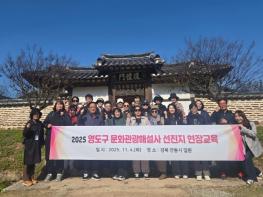 부산시 영도구는 지난 11월 4일 영도구 문화관광해설사의 전문성 강화를 위해 한국 정신문화의 수도로 불리는 경북 안동 일원에서 선진지 견학을 실시했다.이번 견학은 타 지역의 우수한 관광자원 활용 사례