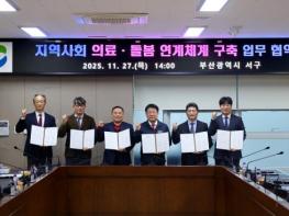 부산 서구는'돌봄통합지원법' 시행에 맞춰, 의료·요양·돌봄 통합지원 기반을 조성하고자 지난 27일 △국민건강보험공단 부산서부지사, △고신대학교 복음병원, △동아대학교병원, △부산대학교병원, △삼육
