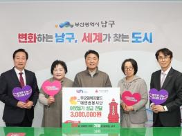 (사)무궁화복지월드 대연권 자원봉사단(단장 장창덕)에서 지난 12월 1일 부산 남구(구청장 오은택)에 이웃돕기 성금 300만 원을 전달했다. (사)무궁화복지월드 대연권 자원봉사단은 2022년 기부를 시작으로