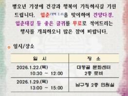 부산 남구는 24절기의 첫 번째 절기인 입춘(2월 4일)을 맞아 구민의 안녕과 길운을 기원하는 '입춘방 나눔행사'를 개최한다고 밝혔다. 입춘방은 입춘을 맞아 집 안의 벽이나 문 등에 붙여 한 해의 복과 경